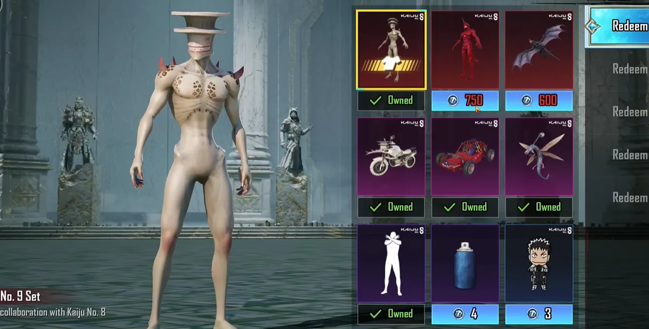 The Prize Path offers some of the coolest rewards in PUBG MOBILE history. You get a mix of mythic outfits, vehicle finishes, emotes, and avatars. The event features exclusive Kaiju No.8 items you can’t get anywhere else. Here’s what you can expect: