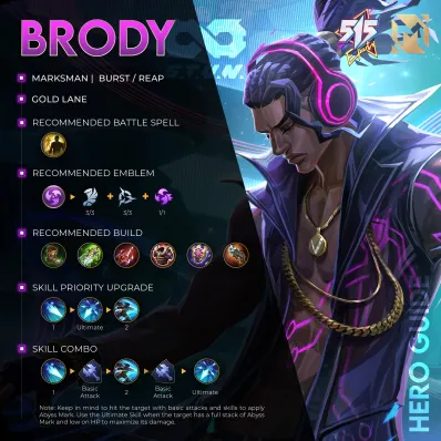 Brody guide for Mobile Legends best build skills emblem and combos