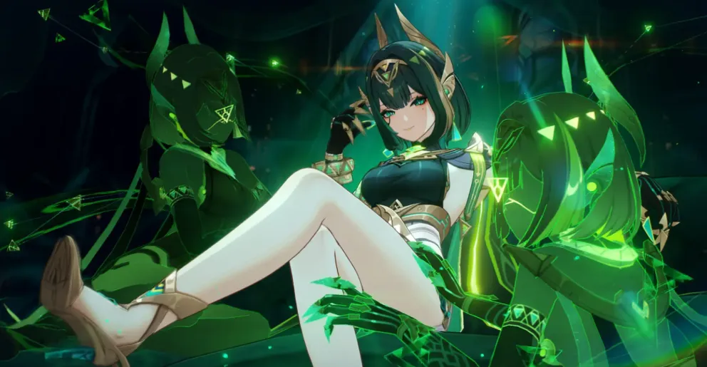 Nefer is a Dendro Catalyst who thrives as a main-field driver. Her kit rewards you for keeping consistent Hydro + Dendro aura while she spends field time converting reaction uptime into a Lunar-Bloom state and firing enhanced Charged Attacks. In most optimized teams, Nefer contributes the majority of total DPS.